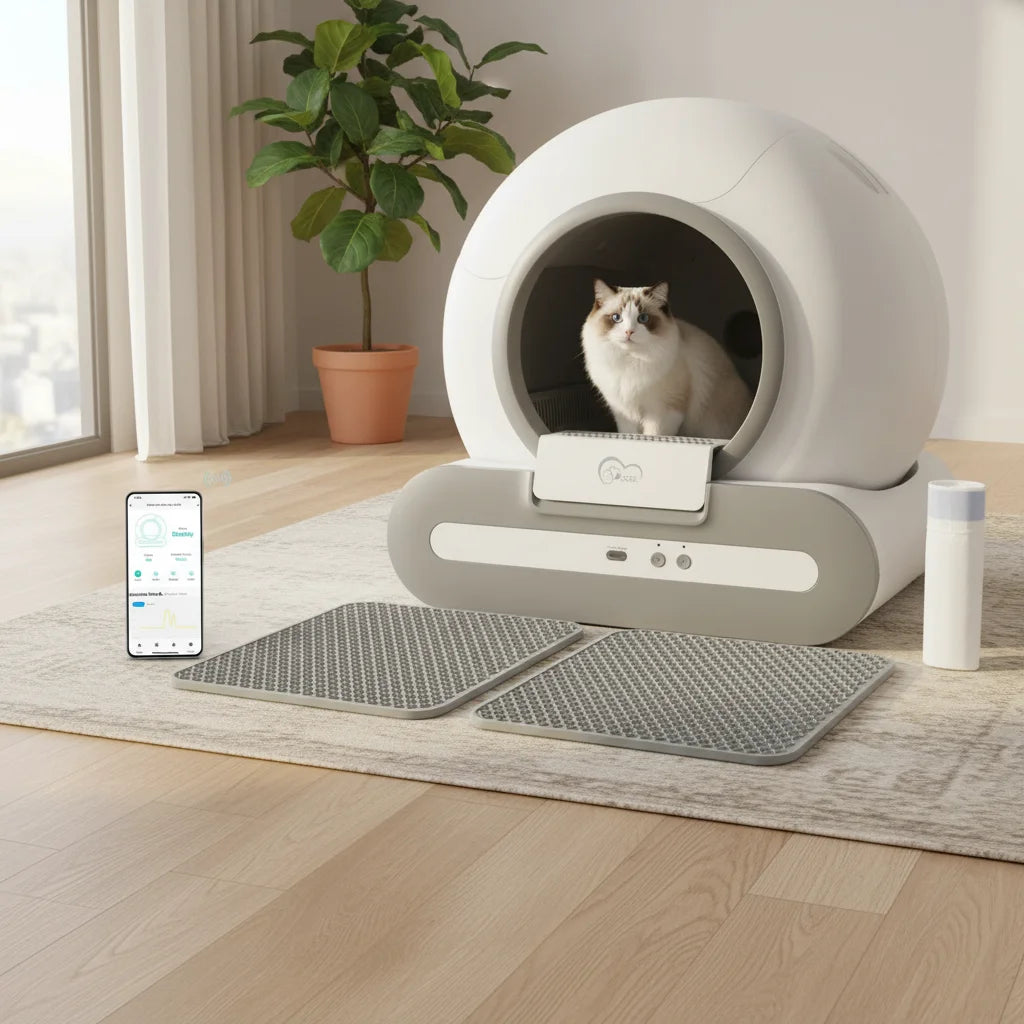 65L Self-Cleaning Cat Litter Box W/App Control, ONLY Supports 2.4G Wifi W/Litter Mat & Trash Bags, Fit for Mixed Litter