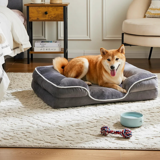 Orthopedic Dog Bed Memory Foam Pet Bed for Small Dogs & Cats with Washable Removable Cover Non-Slip Base Waterproof Liner